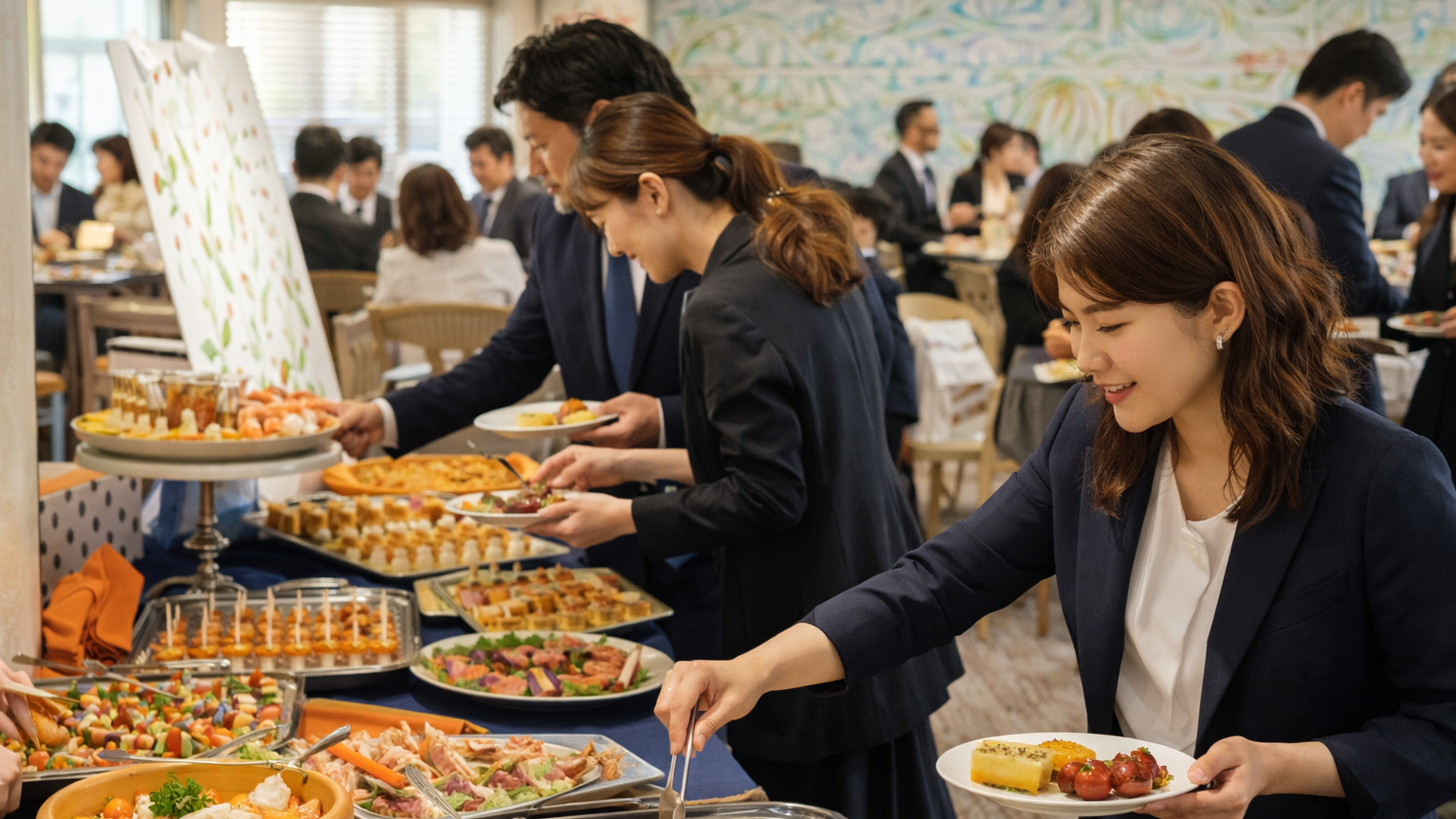 交流が生まれやすい ビュッフェ形式