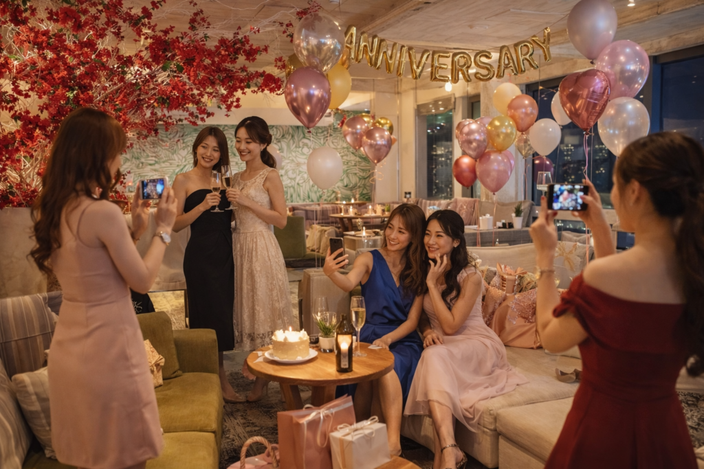 お祝いされる方の写真と動画で演出動画制作を行い、レストランご利用時に店内で演出いたします。