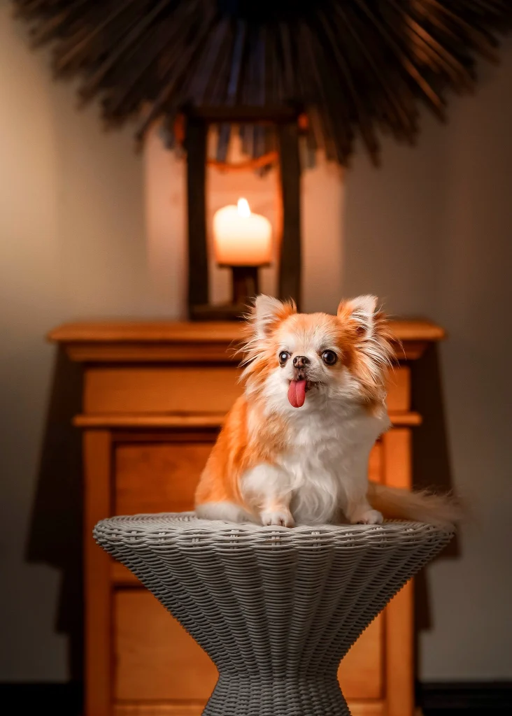 - ソファ・イスの上に乗せられる場合は、「体重7kg以下の愛犬」に限り、 キャリーバッグ・カゴの中、またはお膝の上でお願いいたします。 テーブルに前足をかけないようご配慮ください。